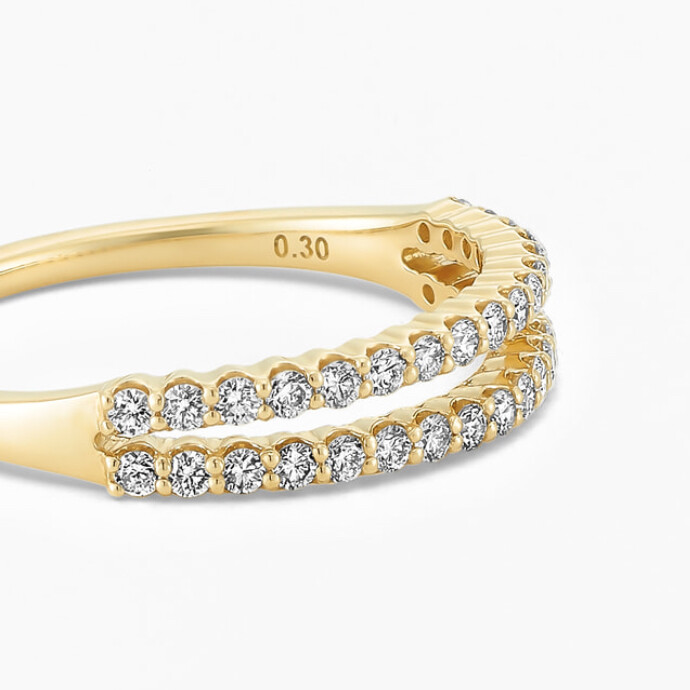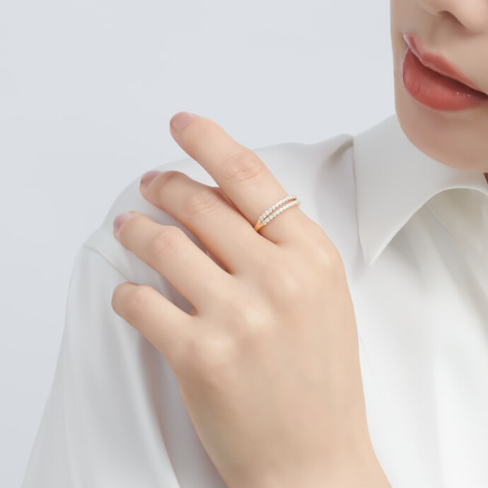 繊細に並んだダイヤモンドを2列にセッティングした、華やかな印象のリング。