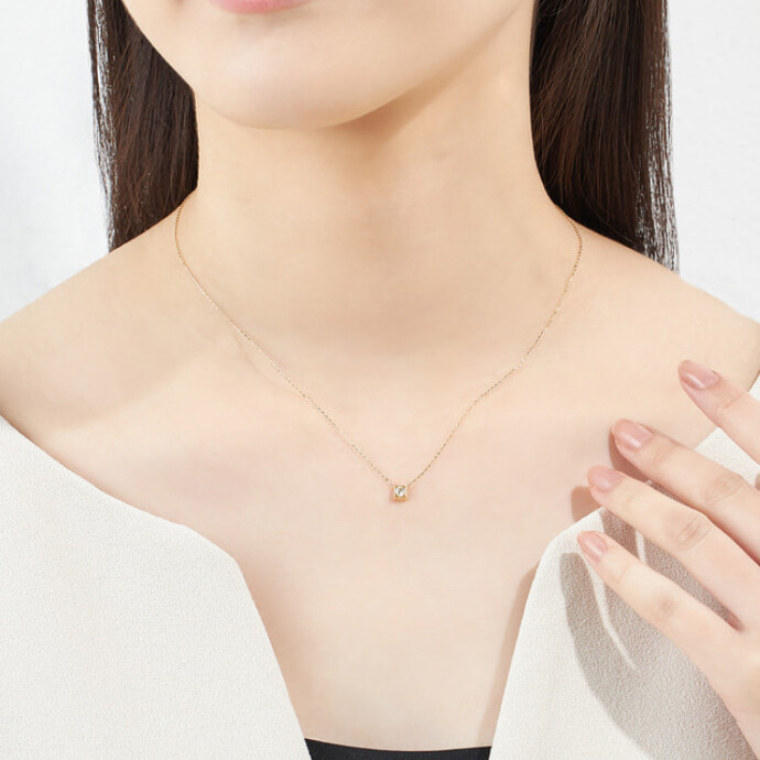 星の輝きをそのまま閉じ込めたような一体感のあるイエローカラーの“Wish upon a star®” ダイヤモンドを使用したシンプルなネックレス。