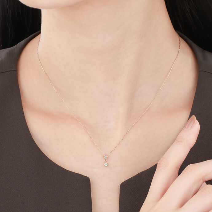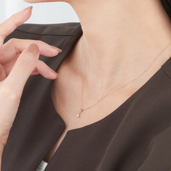 ダイヤモンドの揺れ感とやわらかなピンクゴールドの発色が優しい印象を与えてくれます。