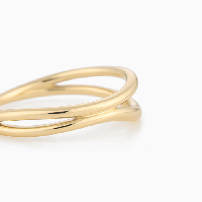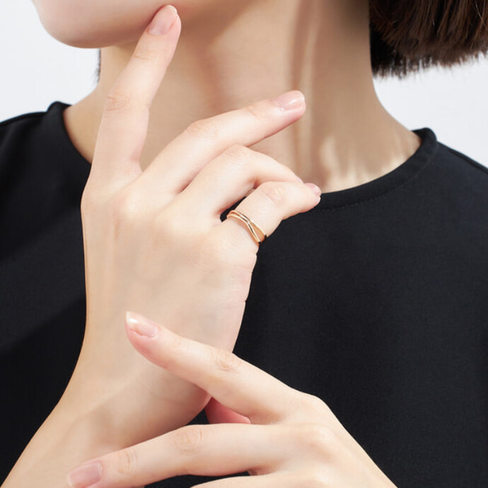 アシンメトリーなラインが遊び心のあるデザインは、幅の広い方を手の外側にして着けると指を長く見せてくれる効果がアップします。