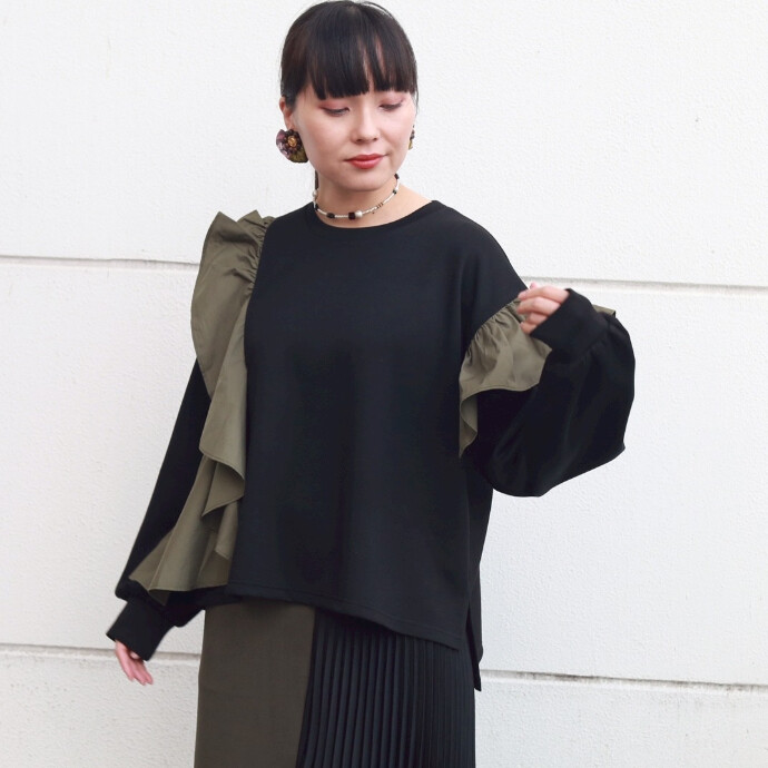 アシンメトリーフリルプルオーバー