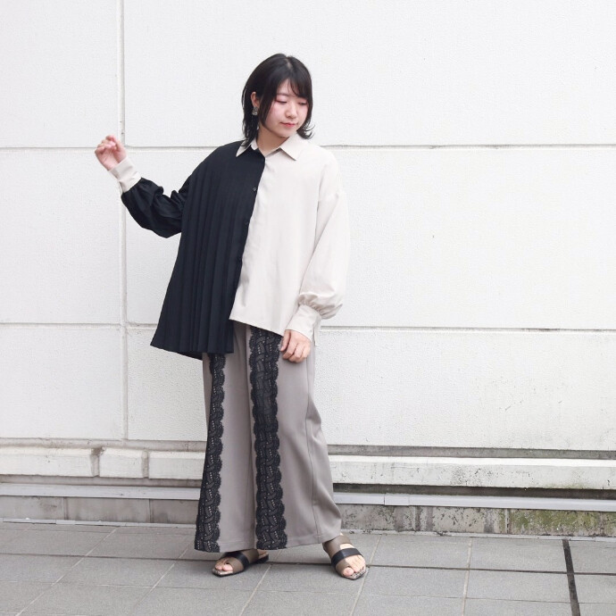 アシンメトリープリーツブラウス