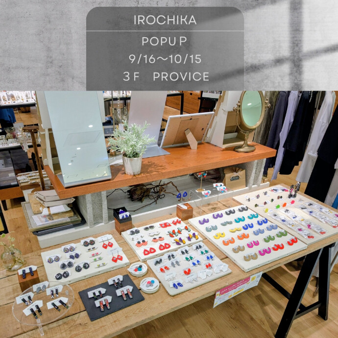 プロバイスでは1か月毎にハンドメイドアクセサリー作家さんの作品が入れ替わります。