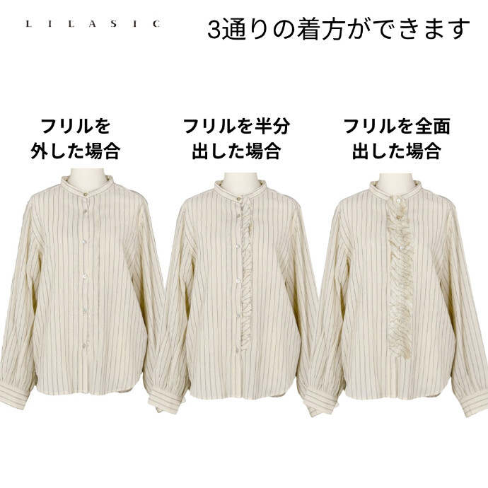 LILASIC/SAMJ6012/リラシク/フロントフリルデタッチャブルシャツ//春秋フリルストライプ